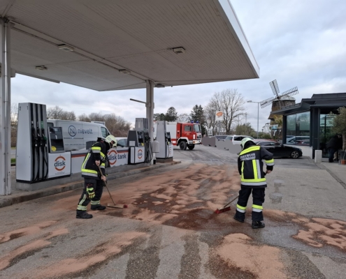 Am 17.12 wurde die Feuerwehr Leobendorf um 14:20 Uhr zu einem S1-Betriebsmittelaustritt bei der Kurvenbar Tankstelle alarmiert.