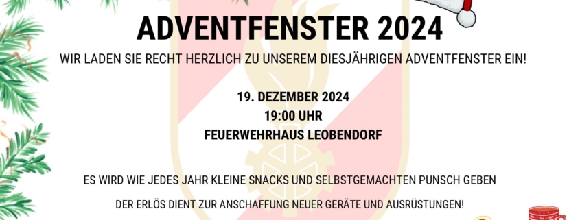 Am 19. Dezember lädt die Feuerwehr Leobendorf zu unserem diesjährigen Adventfenster ab 19:00 Uhr ein.