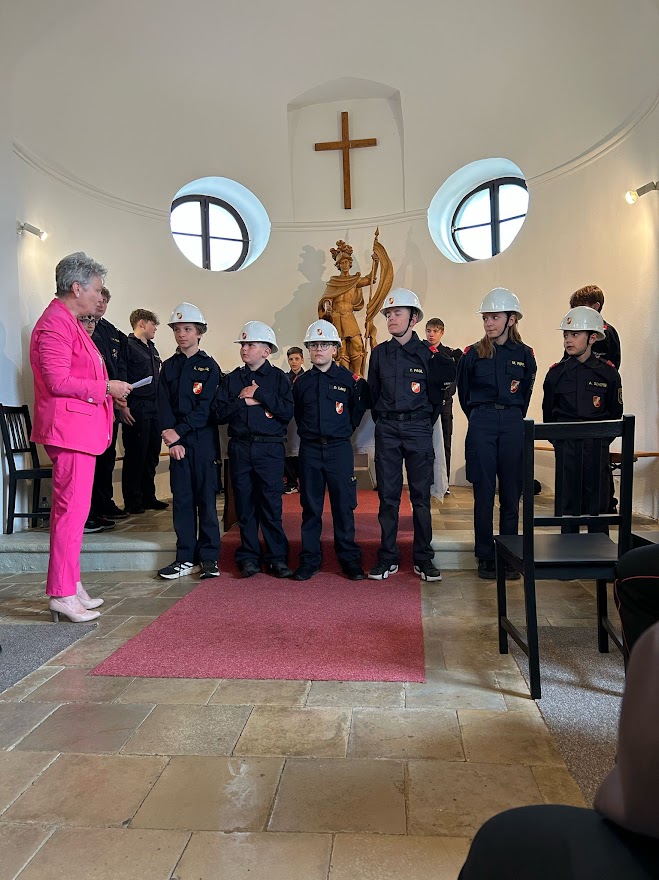 Bei der heurigen Florianimesse am 3. Mai konnten unsere jüngsten Mitglieder von der Feuerwehrjugend durch die Frau Bürgermeister angelobt werden.