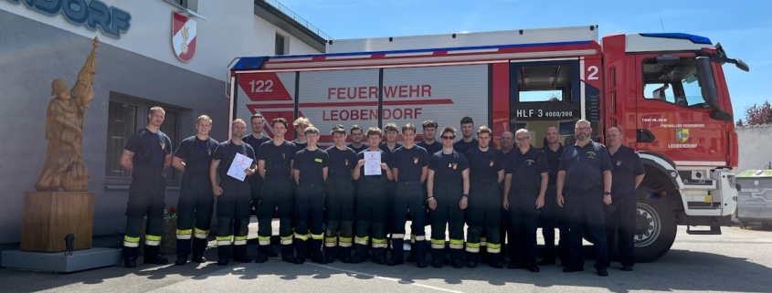 Nach mehreren Wochen intensiven Trainings fand die Prüfung unter der Leitung von Hauptprüfer Wolfgang Liebhart in Leobendorf statt. Die beiden Gruppen traten in der Wertungsklasse Bronze an und konnten ihr Wissen und Können in den Bereichen Gerätekunde, Erste Hilfe, Knotenkunde sowie beim Löschangriff erfolgreich demonstrieren. Im Anschluss wurde allen Teilnehmern das Leistungsabzeichen sowie die entsprechenden Urkunden im Beisein des Kommandanten der FF Leobendorf überreicht.