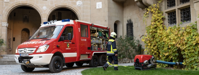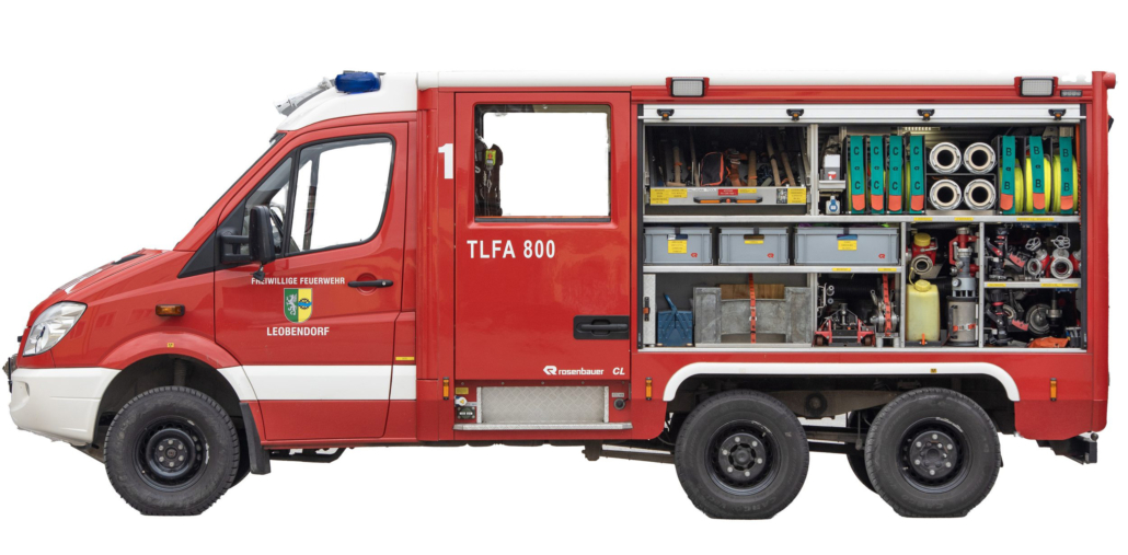 | Ausrüstung: | 800 l Löschwassertank (direkt mit der Tragkraftspritze verwendbar) Tragkraftspritze (TS) FOX 3 Seilwinde (4,0 t) mit Kunststoffseil Notstromaggregat 8 kVA Spezial-Flutlicht für Großraumbeleuchtung GIFAS Apollolight 4-teilige Steckleiter Steckleiternverbindungsteil 60m Schnellangriffsvorrichtung mit formstabilen C-Druckschlauch Schaumausrüstung bestehend aus Komibischaumrohr K2 und Zumischer Z2 3 Stk Atemschutzgeräte 1 Stk Unterwasserpumpe 1300l/min Unterbaumaterial Absturzsicherung Türöffnungswerkzeug Motorkettensäge 2 Stk Hebekissen 2 Stk Rangierroller Greifzug Zug- und Hebemittel (Rundschlingen und Ketten) |