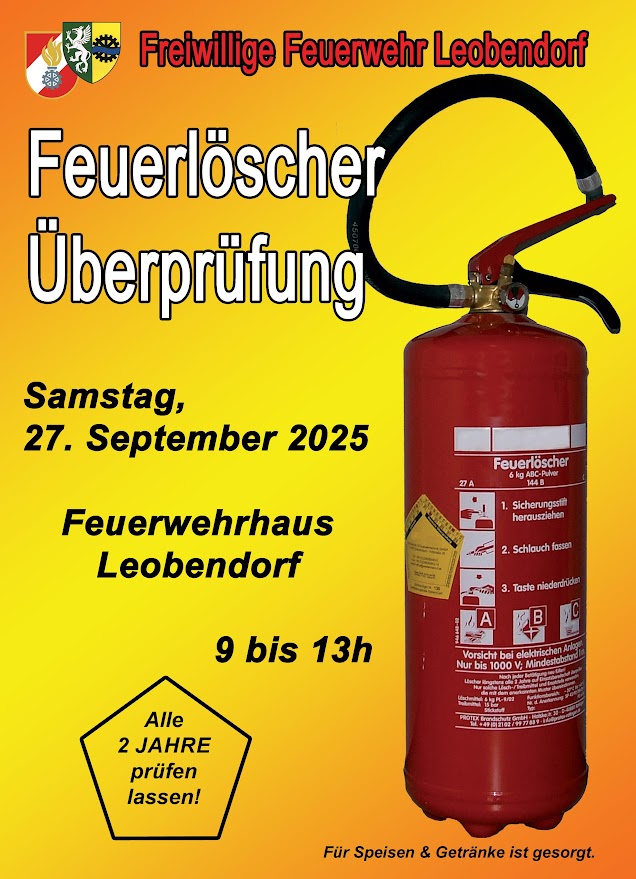 Am Samstag, 27. September findet von 09-13 Uhr die Feuerlöscher-Überprüfung statt. Für Getränke ist gesorgt.