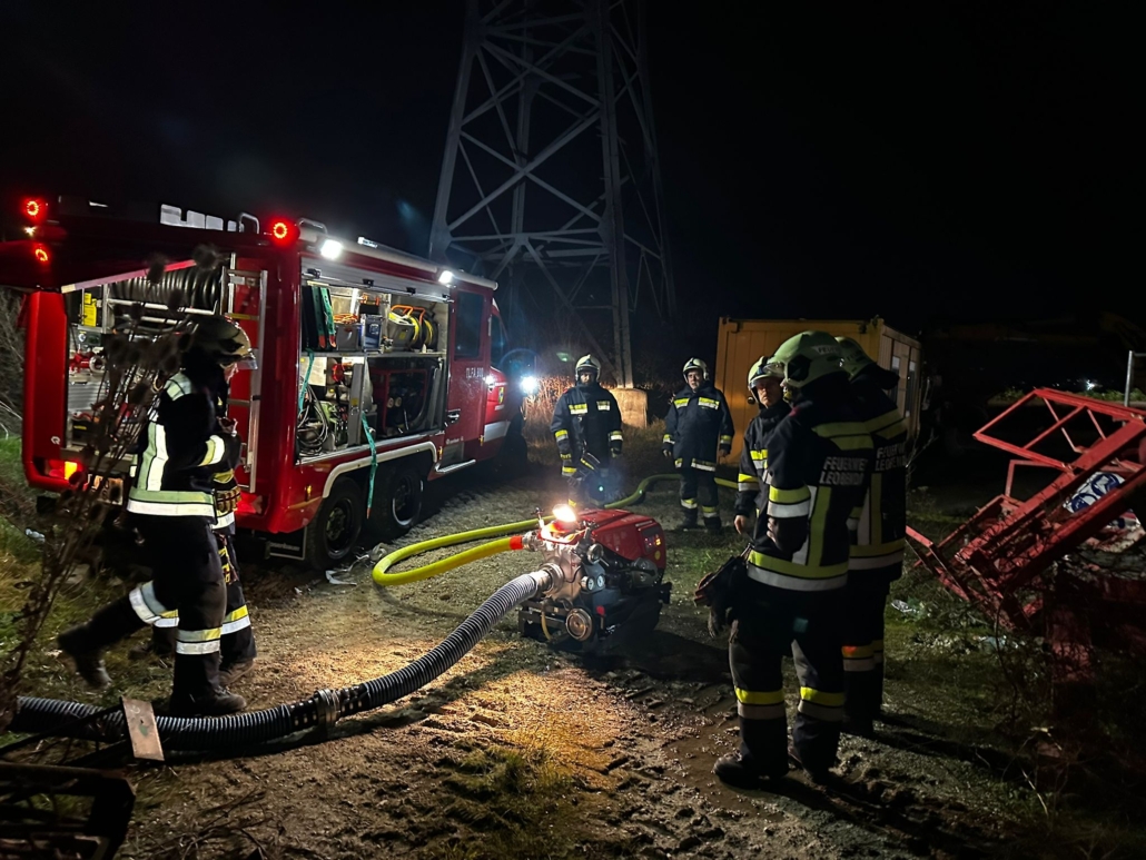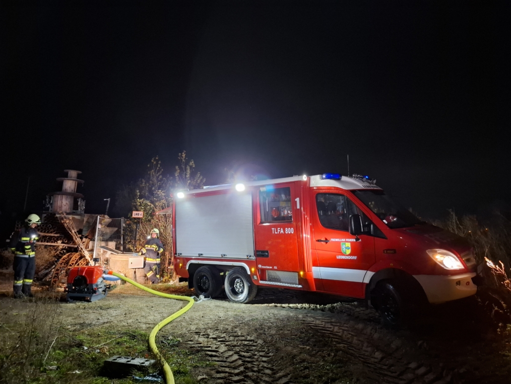 Beide Wasserwerfer von Tank 2 in Betrieb nehmen, Unfallstelle absichern und ausleuchten (bei Station 3).