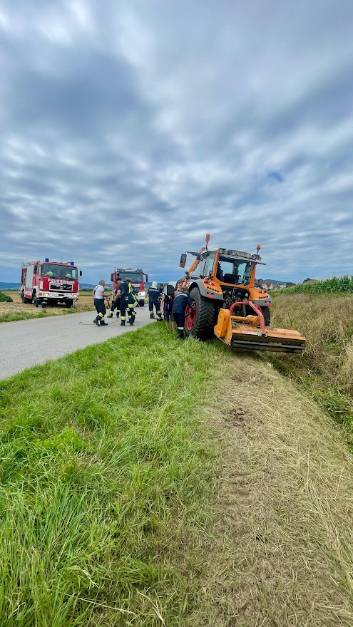 Am 23. Juli wurde die Feuerwehr Leobendorf um 10:07 Uhr zu einer Traktorbergung nach der Ortsausfahrt Richtung Tresdorf alarmiert.