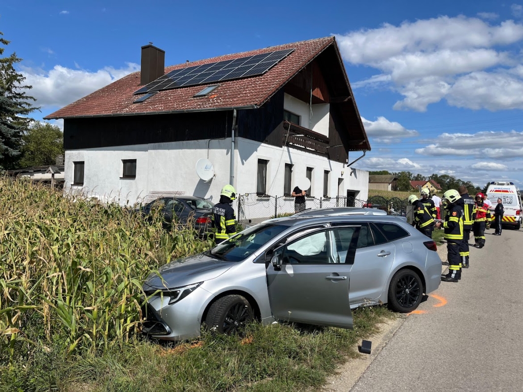 Nach einem Zusammenstoß kamen beide PKW neben der Straße zum Stehen.