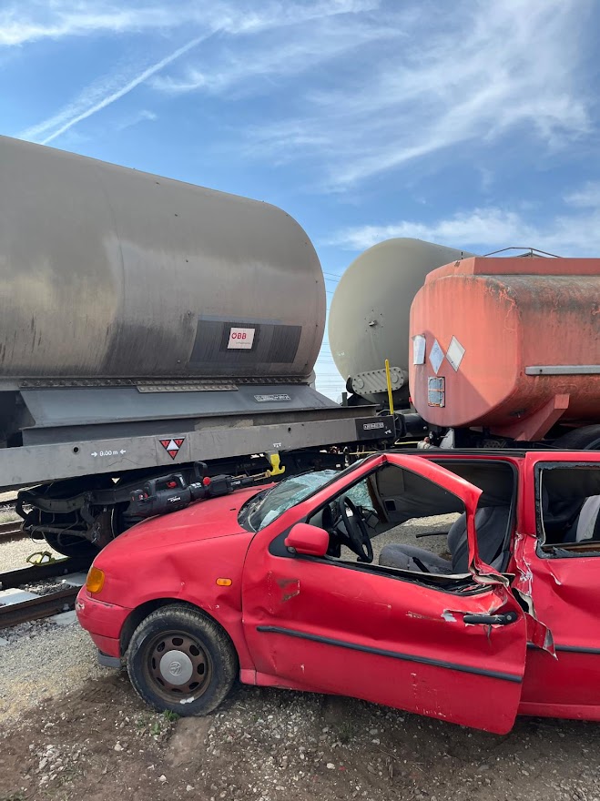 Das angenommene Szenario hätte es in sich. Ein LKW, beladen mit gefährlichen Flüssigkeiten und einem Tank, kollidierte an einem Bahnübergang mit mehreren Kesselwaggons der ÖBB. Zusätzlich wurden zwei PKWs in das Unfallgeschehen verwickelt. Dadurch kam es an mehreren Stellen zu einem unkontrollierten Austritt von Chemikalien. Insgesamt wurden 15 Personen verletzt, einige davon schwer – sie waren in den Unfallfahrzeugen eingeklemmt.